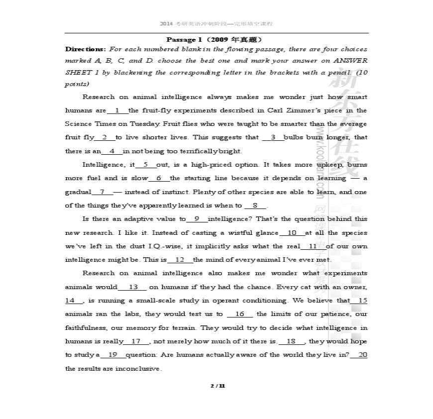 > 2014考研完形冲刺讲义