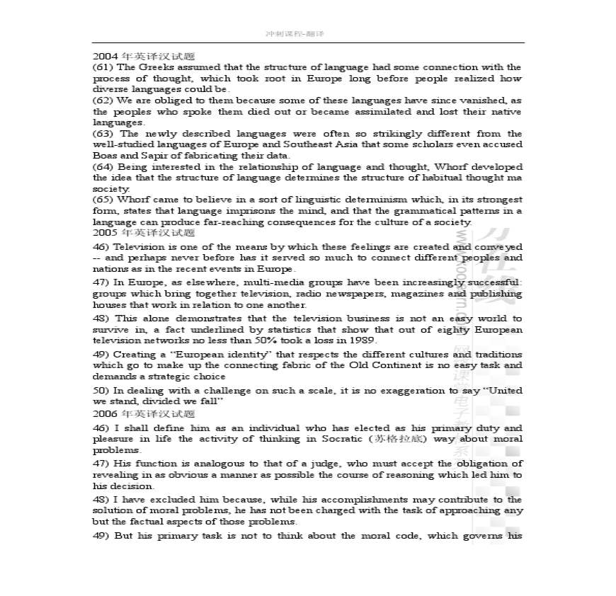 > 2014考研英语翻译冲刺讲义