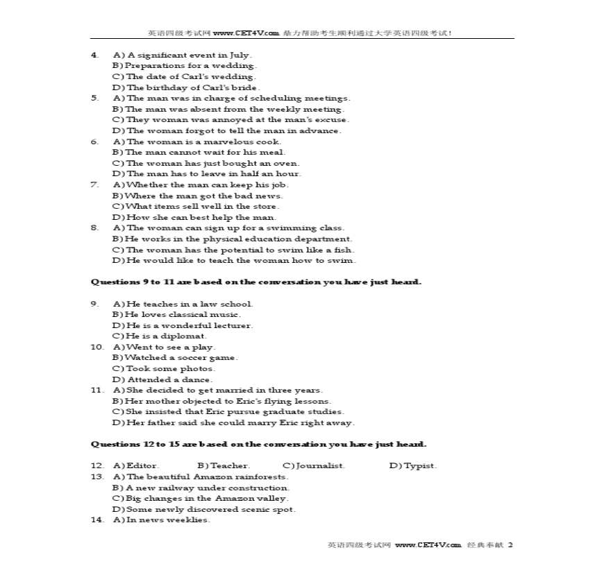 > 2014年12月英语四级真题试卷(第1套)