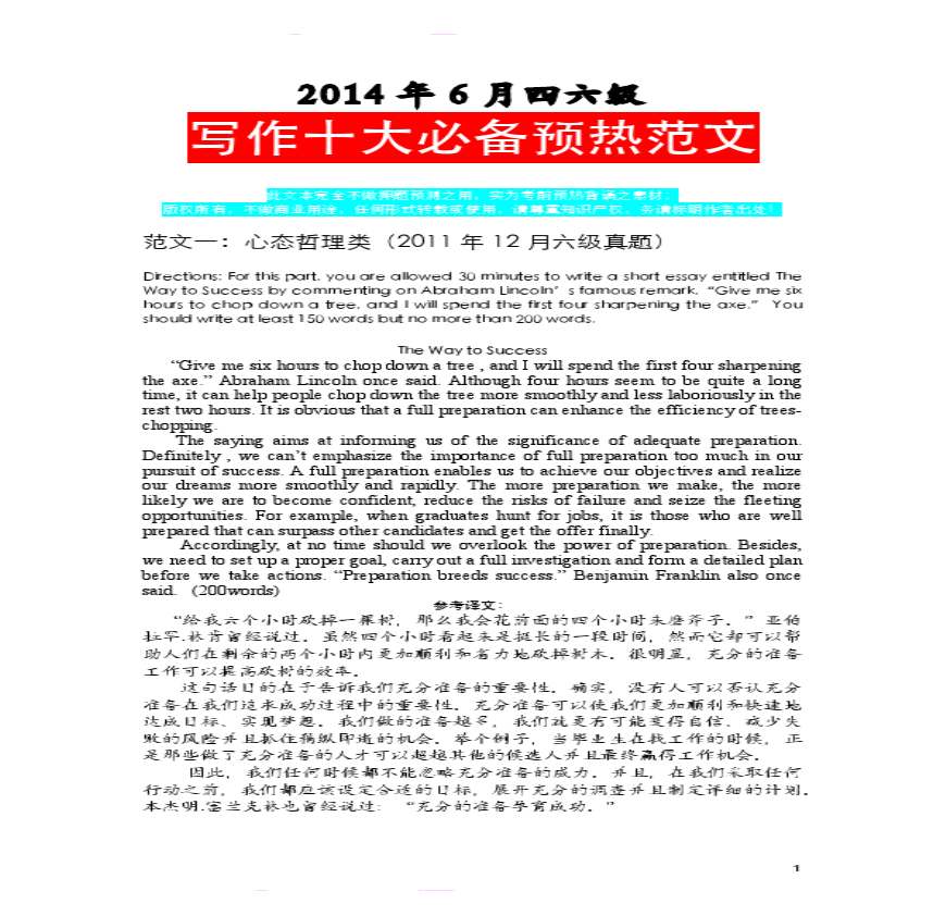 2014年6月四六级十大范文 (1).pdf 免费下载