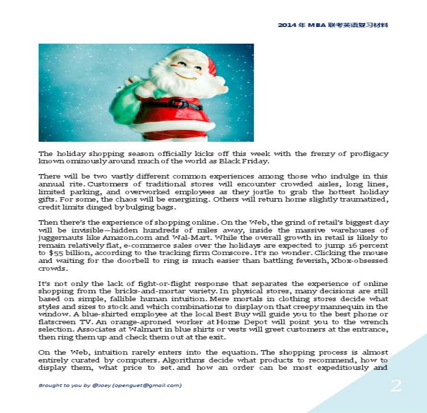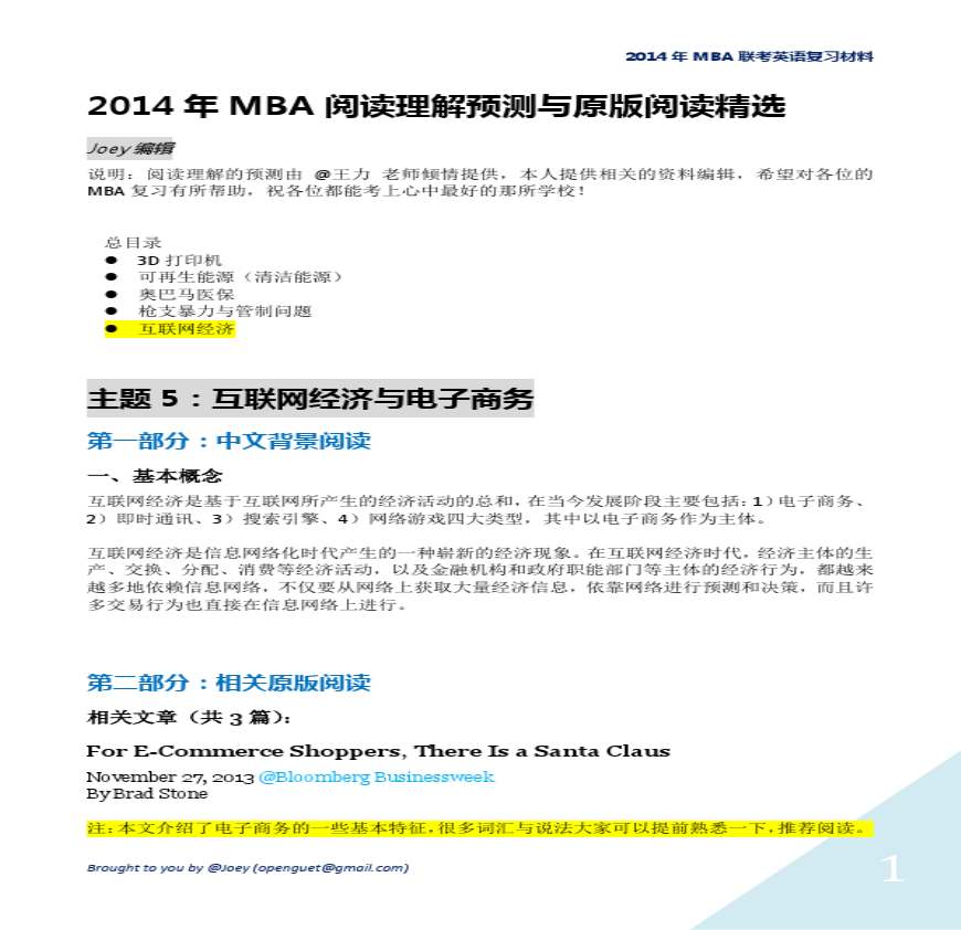 2014年MBA阅读理解预测与原版阅读:互联网经济资料下载,喜欢的朋友可以下载收藏!