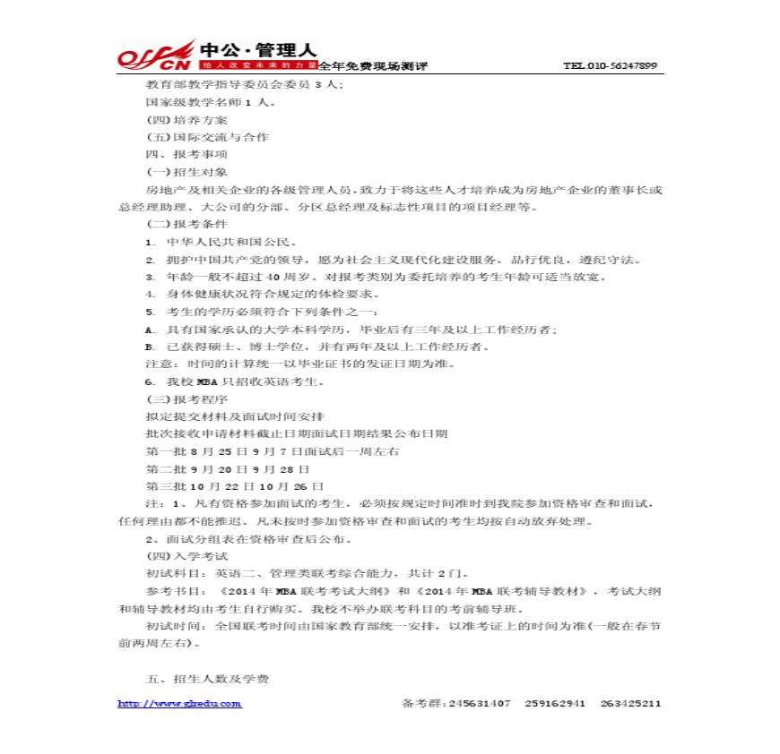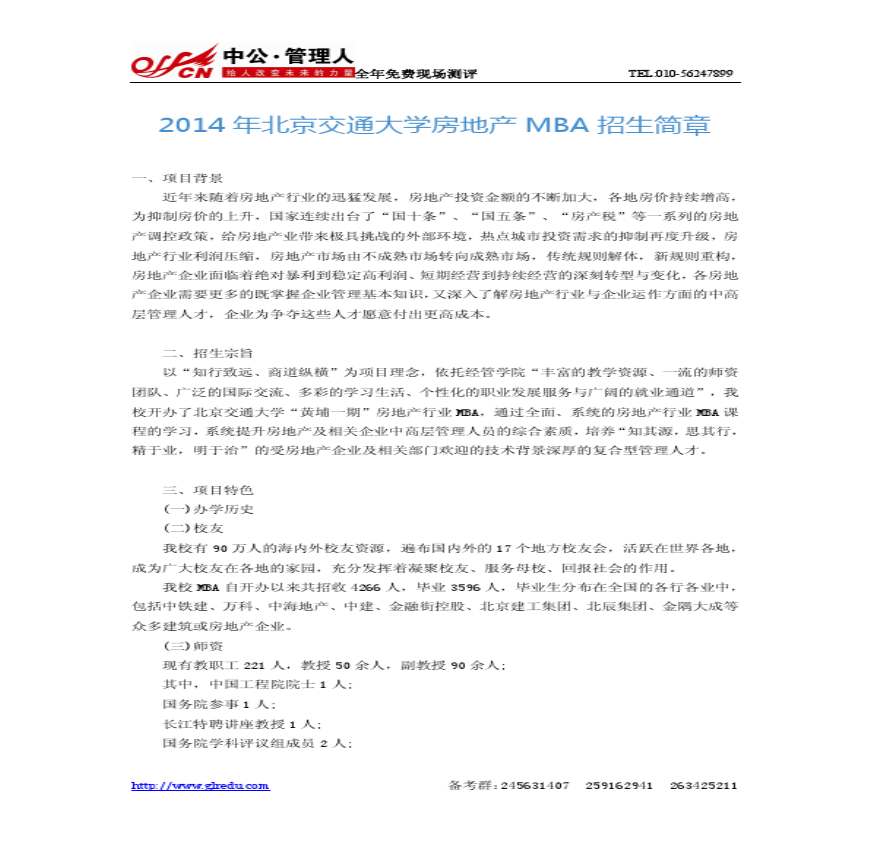 > 2014年北京交通房地产MBA招生简章