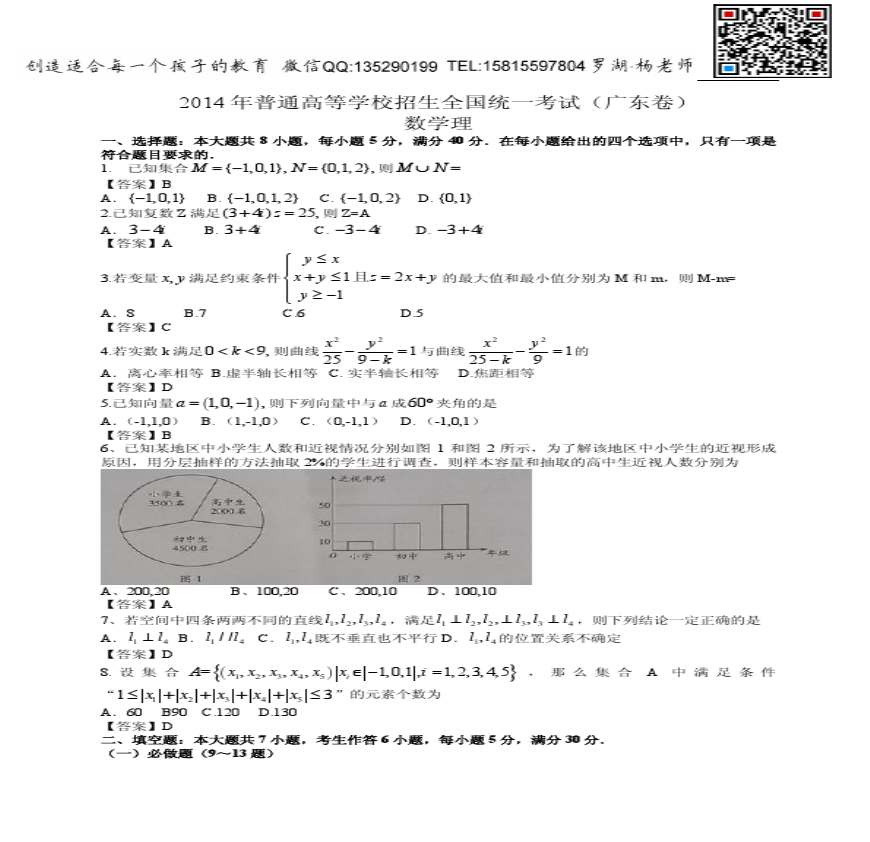 2014年广东高考数学理科答案资料下载,喜欢的朋友可以下载收藏!