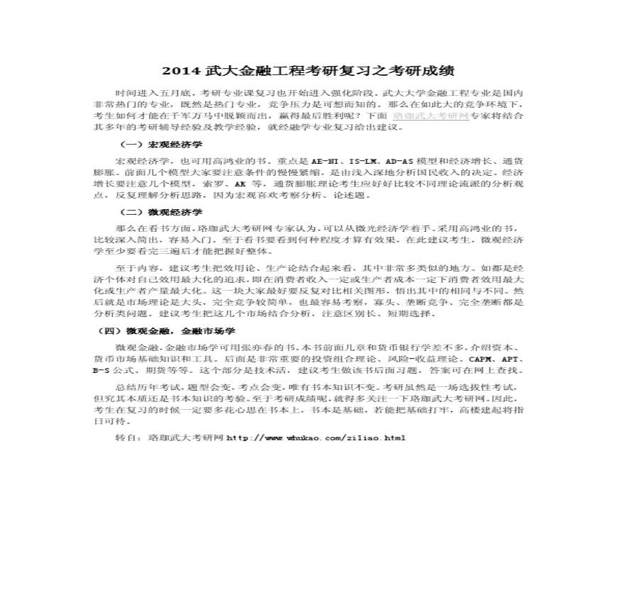 2014武大金融工程考研复习之考研成绩.pdf 免费下载