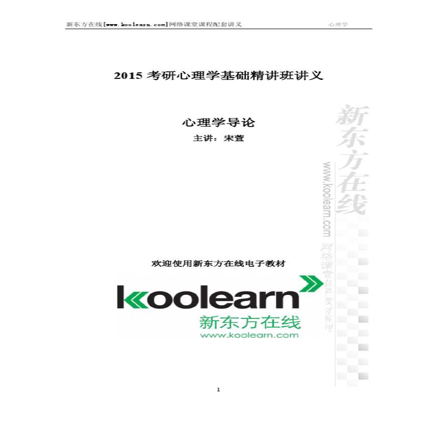 2015考研心理学普通心理学基础精讲—讲义资料下载,喜欢的朋友可以下载收藏!
