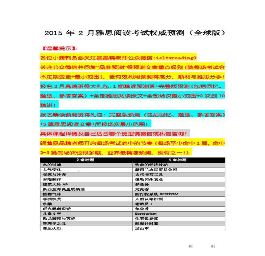 > 2015年2月雅思阅读考试权威预测(全球版)