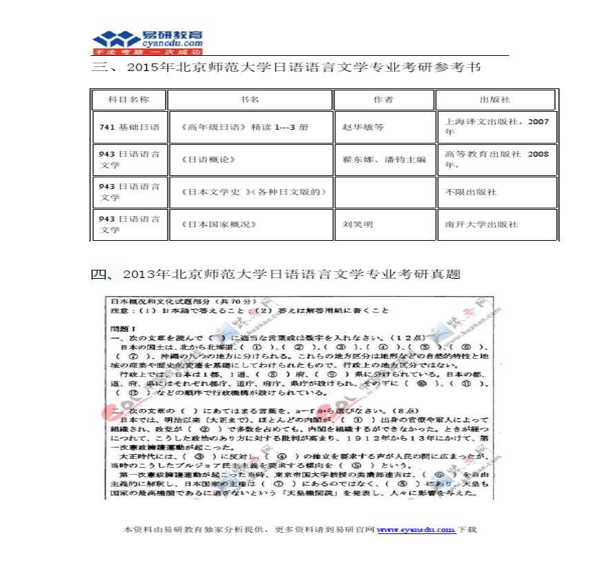2015年北京日语语言文学考研参考书目、真题.pdf 免费下载