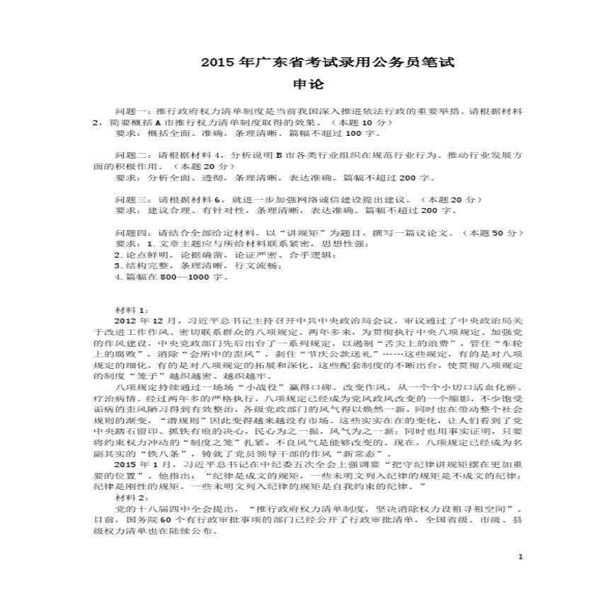 > 2015年广东省考申论真题 (1)