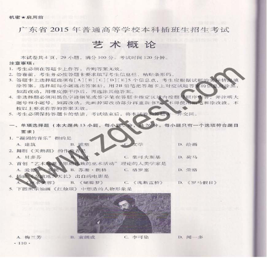 2015年广东专插本考试《艺术概论》考试真题资料下载,喜欢的朋友可以下载收藏!