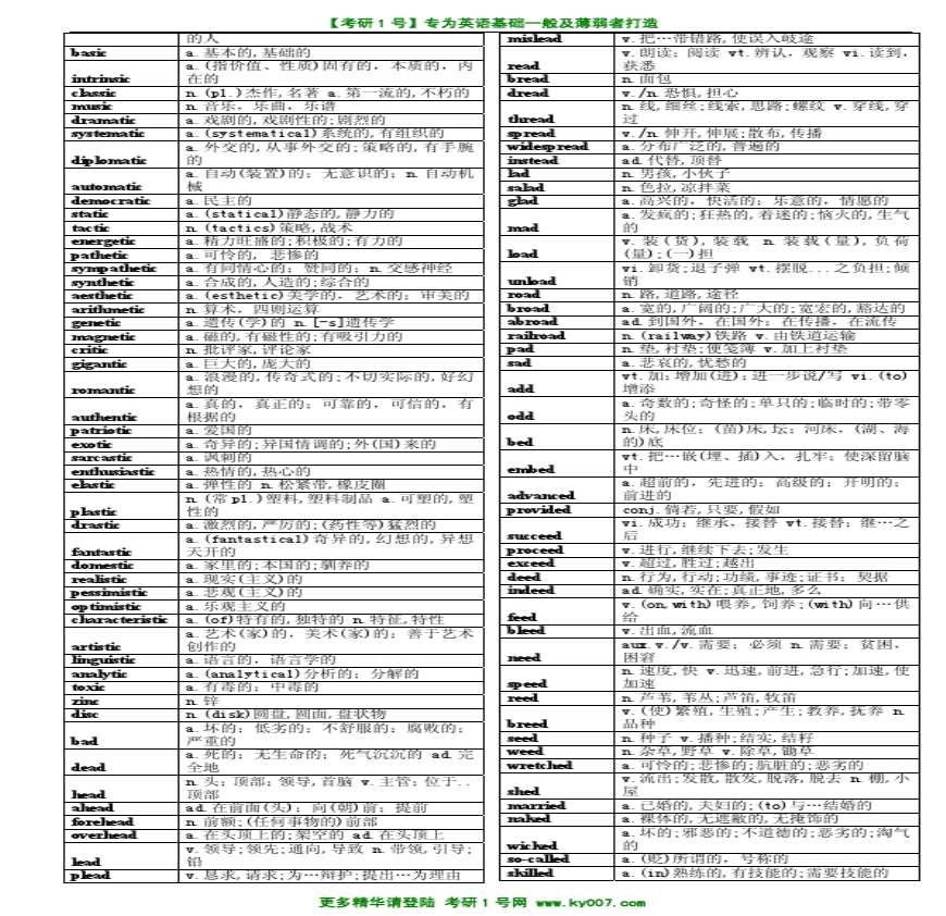 > 2015年考研英语乱序版词汇