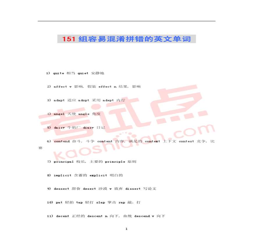 2015年考研英语易混淆词汇(151组)资料下载,喜欢的朋友可以下载收藏!