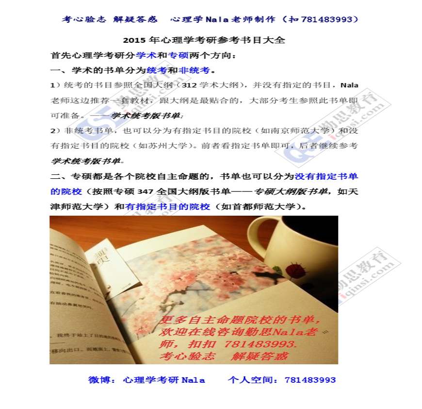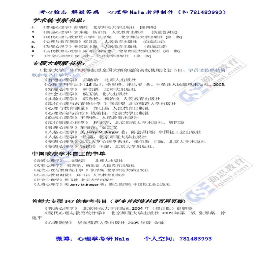 2015年心理学考研参考书目大全.pdf 免费下载