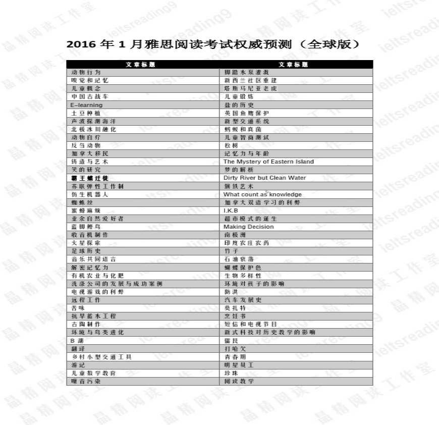 > 2016年1月雅思阅读考试权威预测(全球终极版)