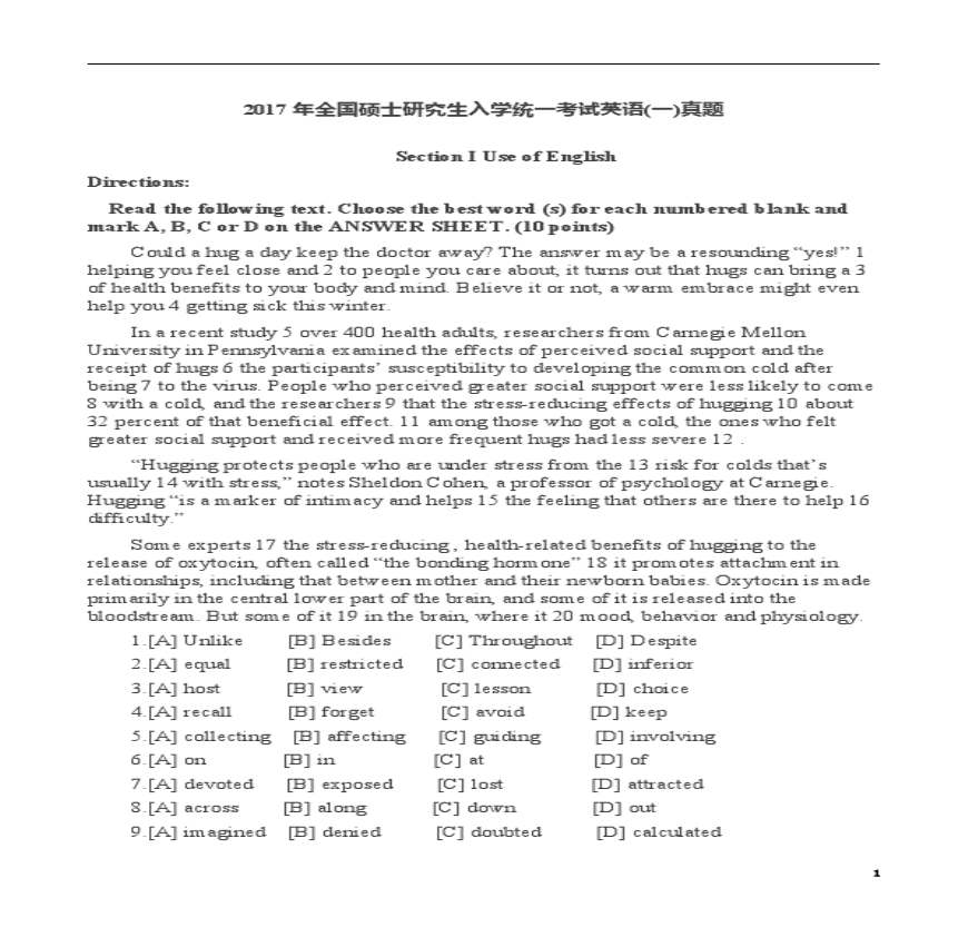 > 2017年考研英语真题及解析