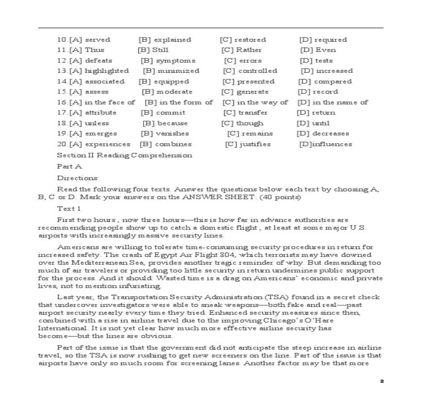 2012年1月研究生英语学位课统考真题及答案