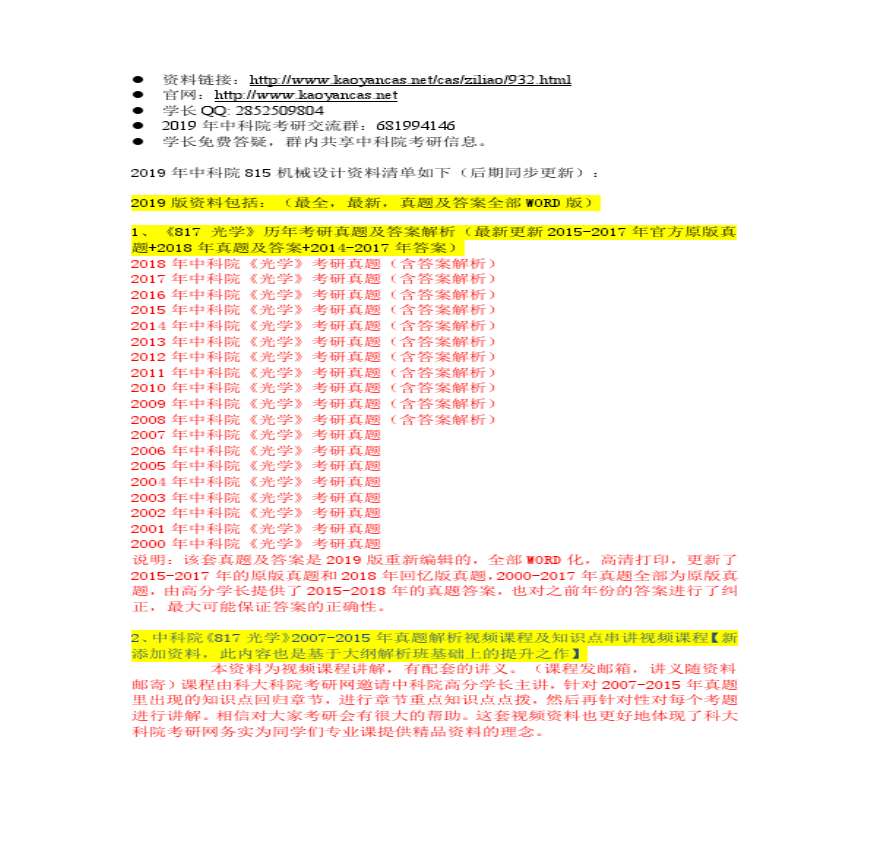 2019年中国科学院817光学考研真题及答案资料 清单资料下载,喜欢的朋友可以下载收藏!