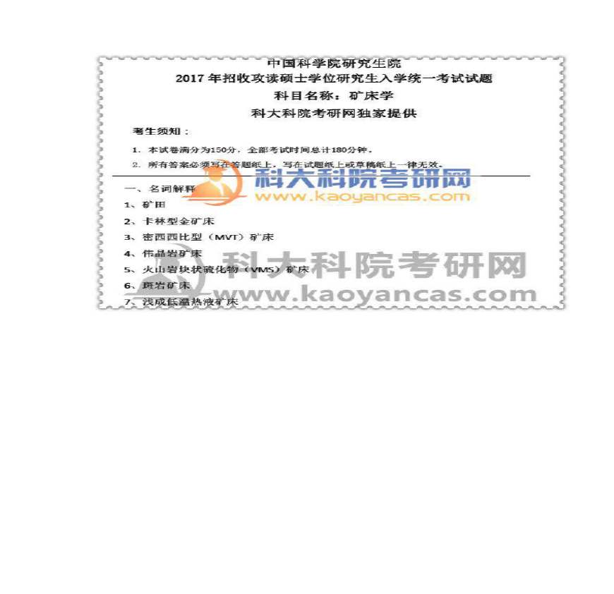 2019年中国科学院833矿床学考研真题及答案资料 清单.pdf 免费下载
