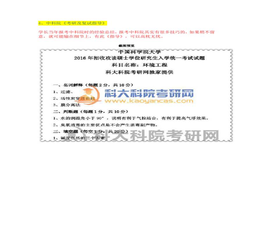 2019年中国科学院927环境工程考研真题及答案资料 清单.pdf 免费下载