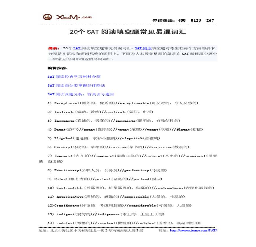 20个SAT阅读填空题常见易混词汇资料下载,喜欢的朋友可以下载收藏!