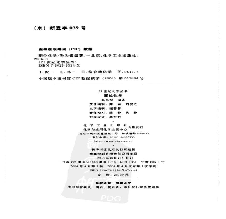 21世纪化学丛书—配位化学资料下载,喜欢的朋友可以下载收藏!
