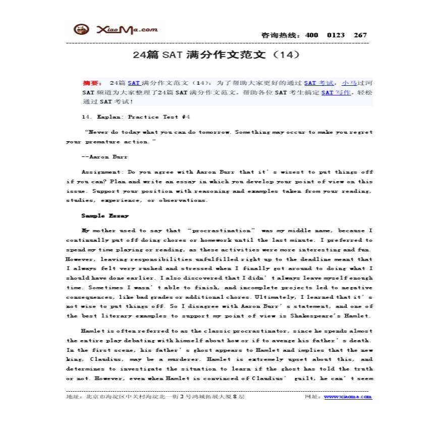 24篇SAT满分作文范文(14)资料下载,喜欢的朋友可以下载收藏!
