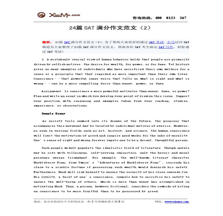 24篇SAT满分作文范文(2)资料下载,喜欢的朋友可以下载收藏!