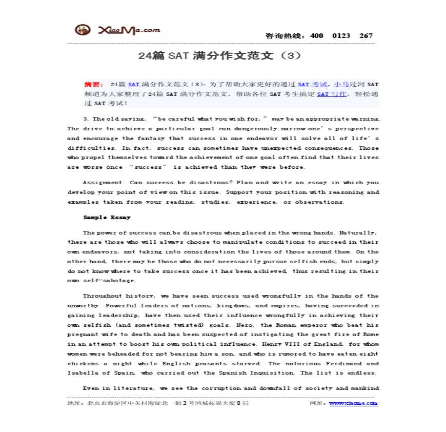 24篇SAT满分作文范文(3)资料下载,喜欢的朋友可以下载收藏!