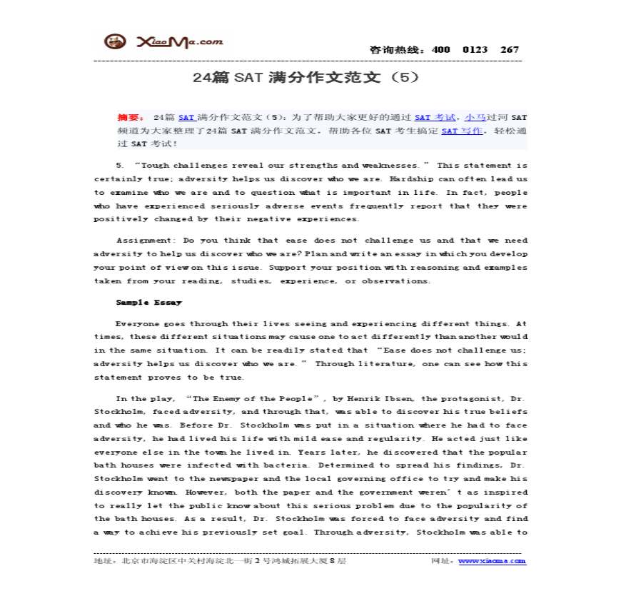 预祝顺利通过考试! 新东方留学SAT考试辅导SAT写作正文 x留学SAT考试SAT辅导SAT写作() 金币 xb 其他人还搜了高考满分作文精选字范文篇 中考满分作文范文篇 高考满分作文精选范文及赏析 文章素材字 申论范文篇背诵 高考满分作文精选范文篇 中考满分作文范文篇 高考优秀作文范文篇 高考优秀作文范文篇 中考满分作文范文篇 高考满分作文篇 高考满分作文精选篇 高考满分作文精选篇议论文 中考满分作文精选范文篇 高考满分作文精选范文 高考满分作文篇 托福满分作文范文 高考满分作文精选篇 高考满分作文精选篇字 高考作文范文及材料篇 高考满分作文精选篇 高考满分作文精选篇字议论文 高考满分作文精选篇 最新材料作文题及例文 SAT考试SAT写作() 地址:北京市海淀区中关村海淀北一街 号鸿城拓展大厦 层址:))摘要:摘要: () :为了帮助大家更好的 考试年月日x 学习资料 (( )-