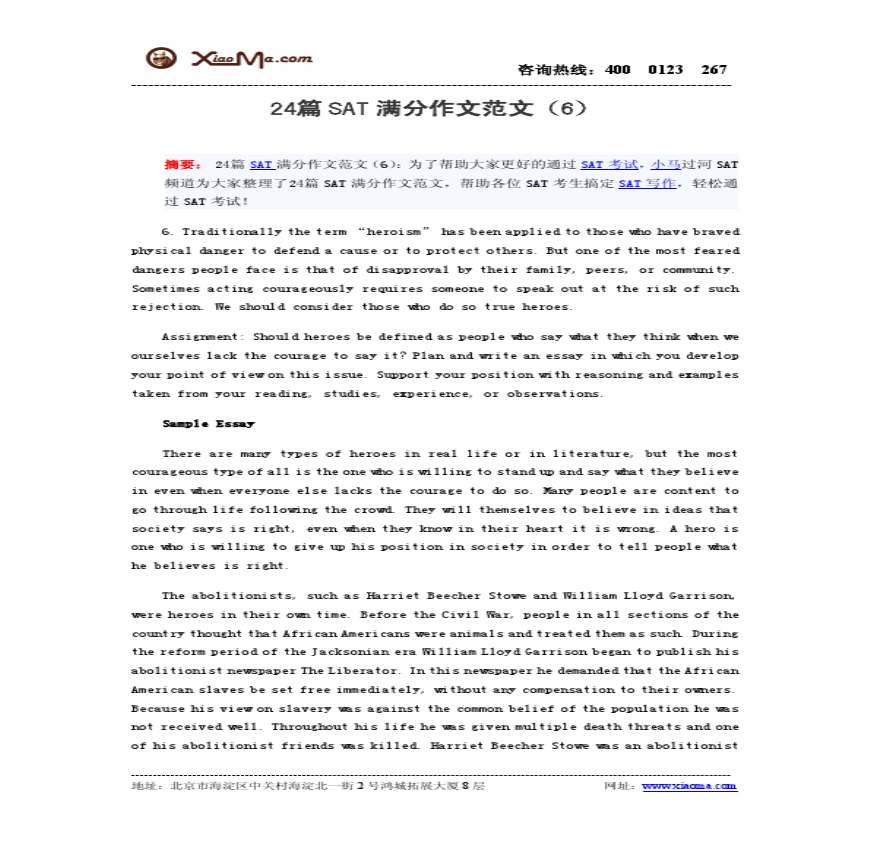 24篇SAT满分作文范文(6)资料下载,喜欢的朋友可以下载收藏!