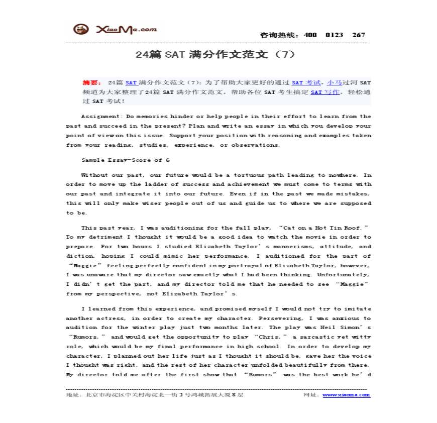 24篇SAT满分作文范文(7)资料下载,喜欢的朋友可以下载收藏!