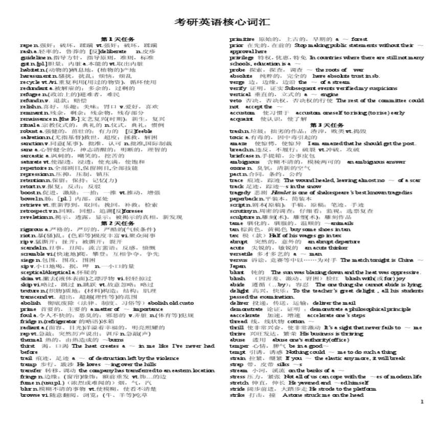 25天攻克考研英语核心词汇资料下载,喜欢的朋友可以下载收藏!