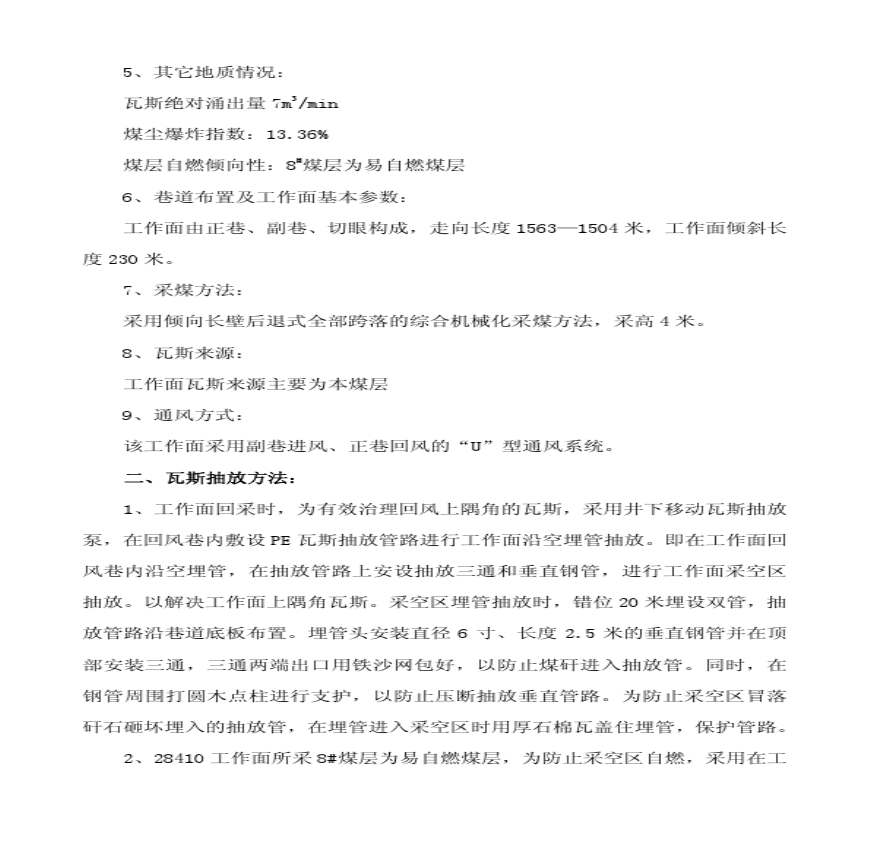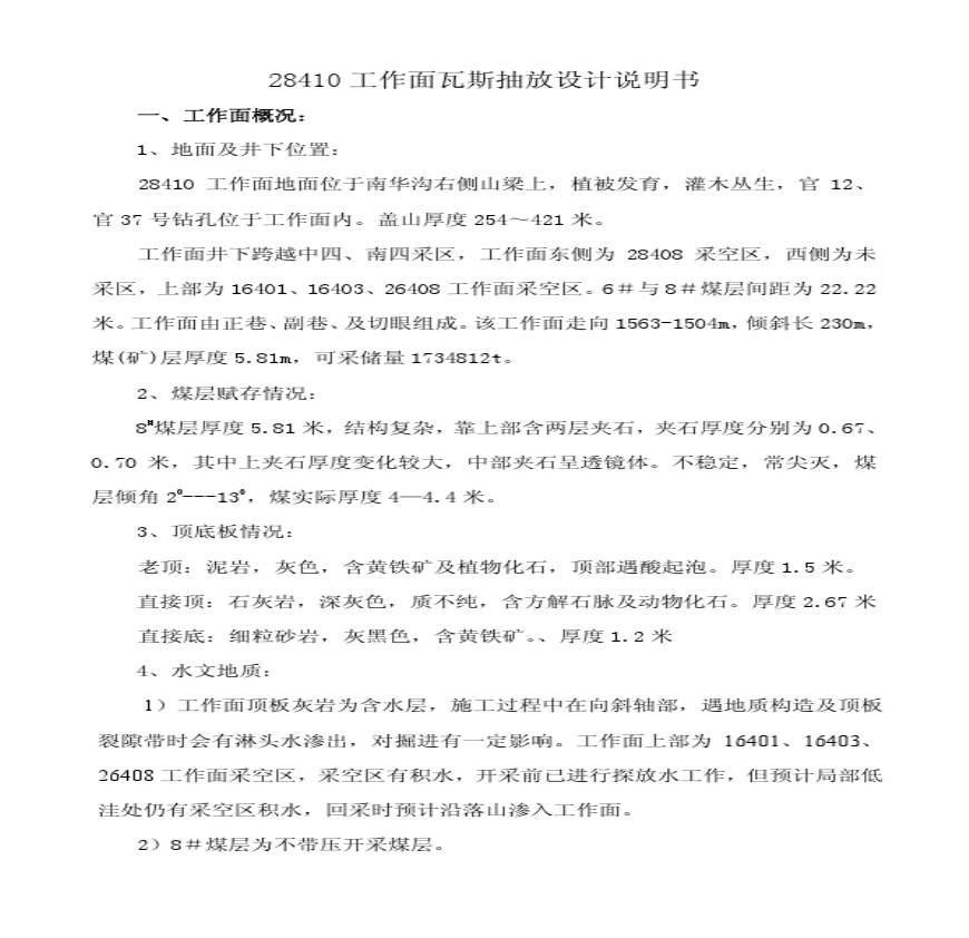 学习资料页 _ 学习资料页 文档介绍: 工作面***抽放设计说明书 一、工作面概况: 、地面及井下位置: 工作面地面位于南华沟右侧山梁上,植被发 其他人还搜了瓦斯抽放泵型号参数 瓦斯抽排工艺 综采工作面设备布置图液压 轻型瓦斯抽放管路 瓦斯抽放泵说明书 化学工业大中型装置试车工作规范 火力发电厂除灰设计技术规程 火力发电厂除灰设计规程 纸箱开槽机安全操作规程 工艺操作规程 石油化工工厂布置设计规范b 工艺操作规程模板 高档普采工作面作业规程 食堂压面机安全操作规程 瓦工安全技术操作规程 综掘工作面作业规程 刨床操作安全操作规程 瓦斯抽放管 四面刨安全操作规程 化工设备图样技术要求 瓦斯抽放泵型号及参数 瓦斯抽放规范 净化工作台使用说明书 辐射工作设备操作规程 净化工作台操作规程