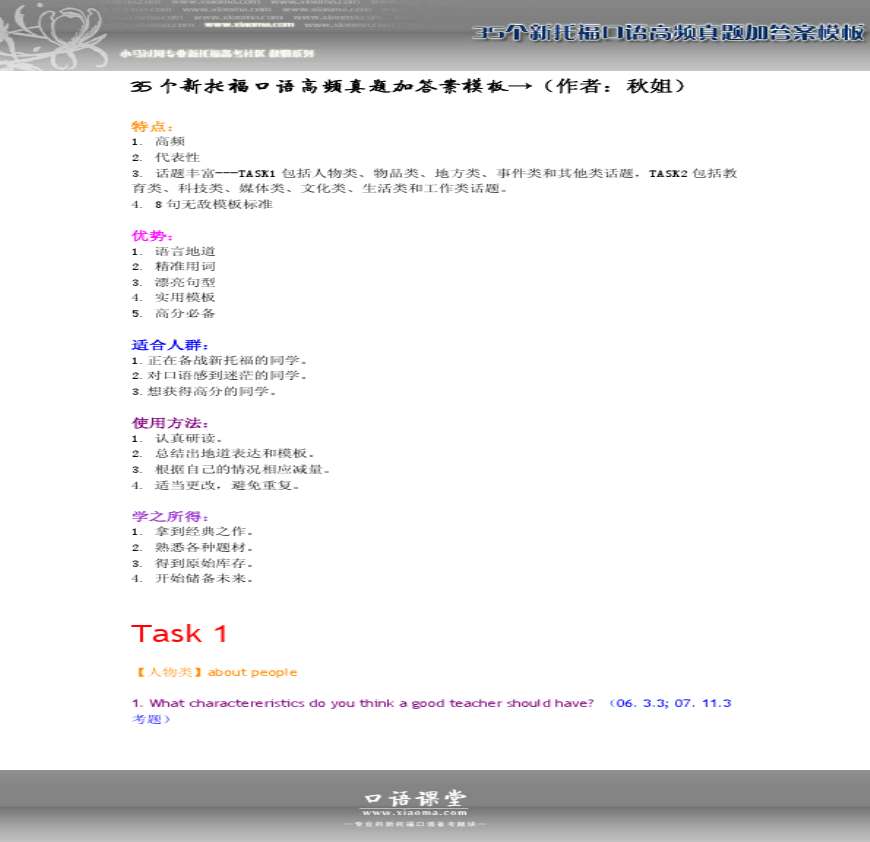 新托福iBT口语黄金80题【答案版】_无老师力荐!