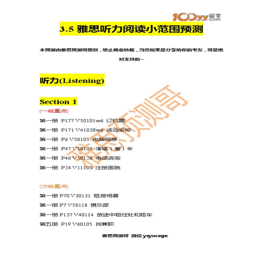 > 3月5日雅思听力阅读预测(微博专用)
