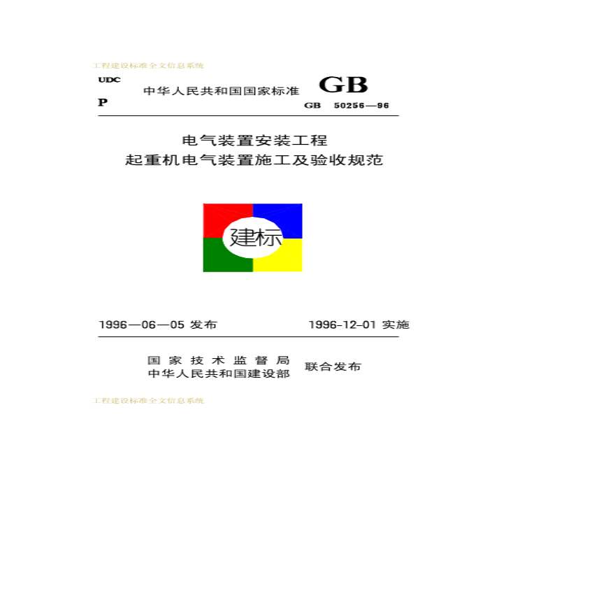 > 44、GB50256-96-电气装置安装工程-起重机电气装置施工及验收规范