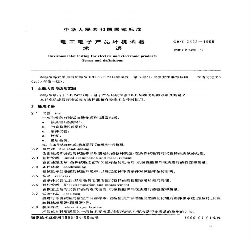 > 46 GBT2422-1995电工电子产品环境试验 术语