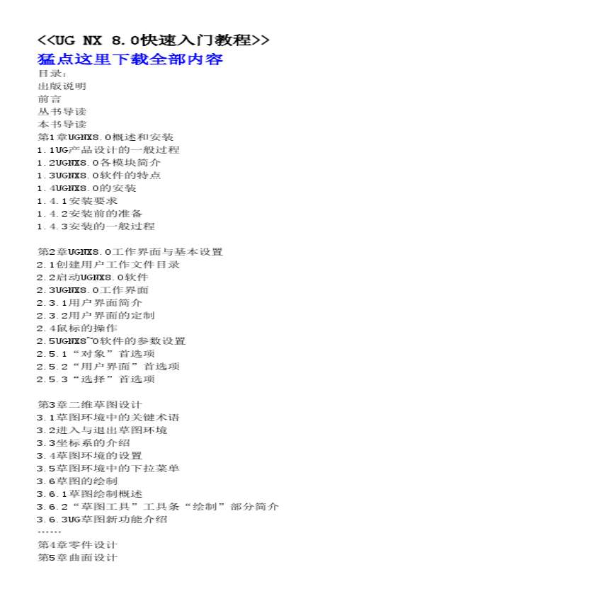 4739.UG NX 8.0快速入门教程资料下载,喜欢的朋友可以下载收藏!