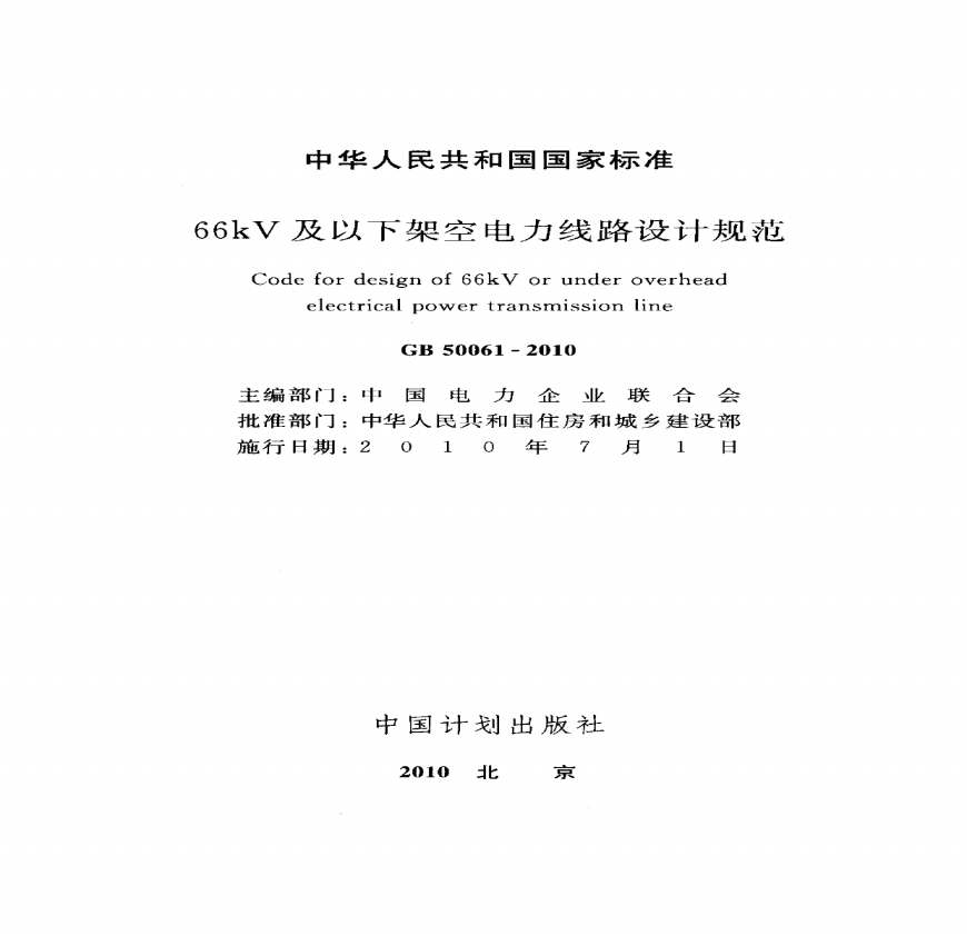 > 55 GB50061-2010 66KV及以下架空电力线路设计规范