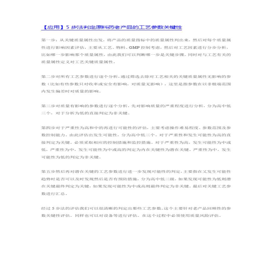 5步法判定原料药老产品的工艺参数关键性.pdf 免费下载