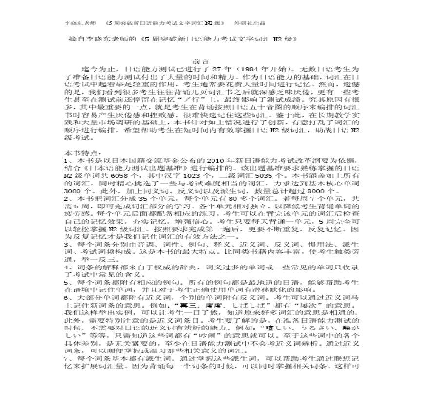5周突破新日语能力考试文字词汇N2级资料下载,喜欢的朋友可以下载收藏!