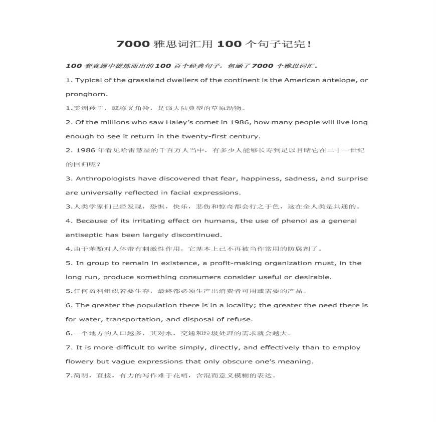 !套真题中提炼而出的百个经典句子,包涵了个雅思词汇。