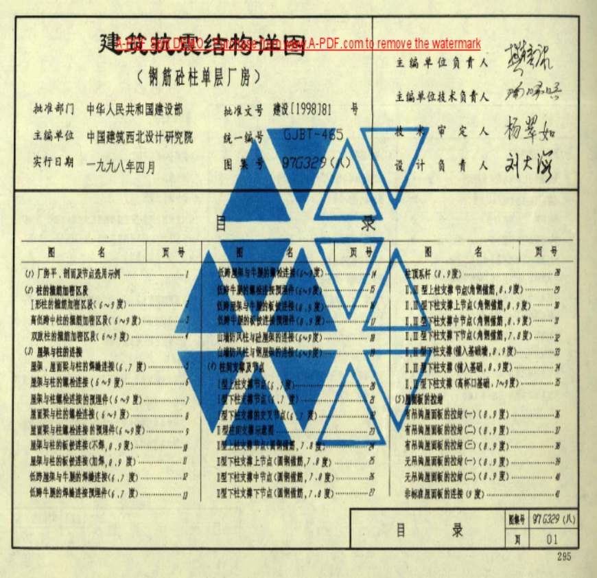 97G329-8建筑抗震结构详图(钢筋砼柱单层厂房).0001.pdf 免费下载