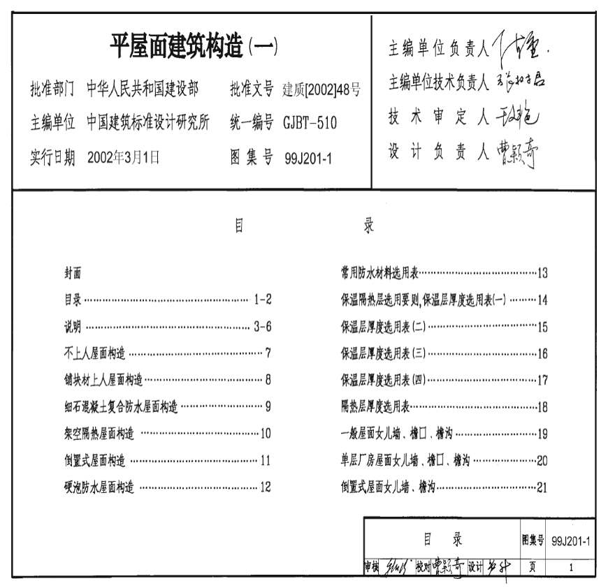 > 99J201-1 平屋面建筑构造(一)