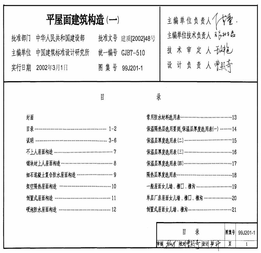 > 99J201-1平屋面建筑构造(一)
