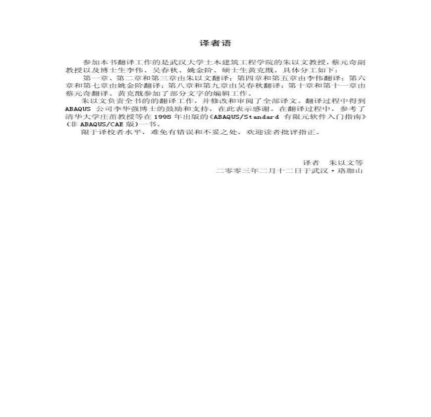 译者二零零三年二月十二日于武汉珞珈山第一章导引ABAQUS各简介:本文档为《》,可适用于人文社科领域,主题内容包含ABAQUSSr有限元软件入门指南ABAQUSCAE版HKrSrINC朱 学习资料页