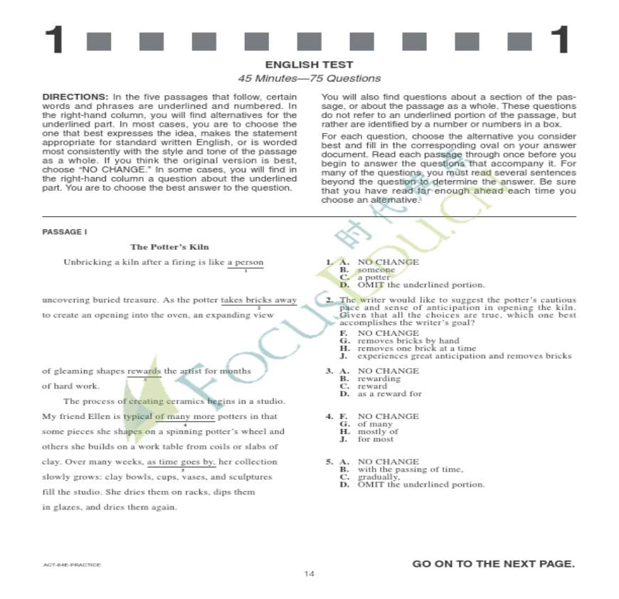 ACT真题 Form 64E资料下载,喜欢的朋友可以下载收藏!