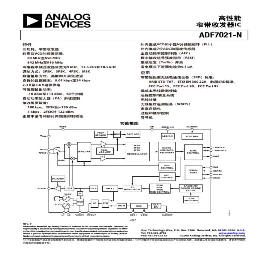 ADF7021-N_cn(无线射频芯片).pdf 免费下载