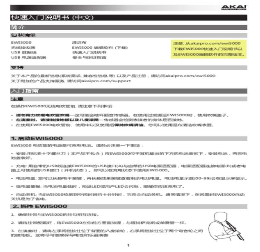 AKAI EWI5000 快速入门说明书(中文)资料下载,喜欢的朋友可以下载收藏!