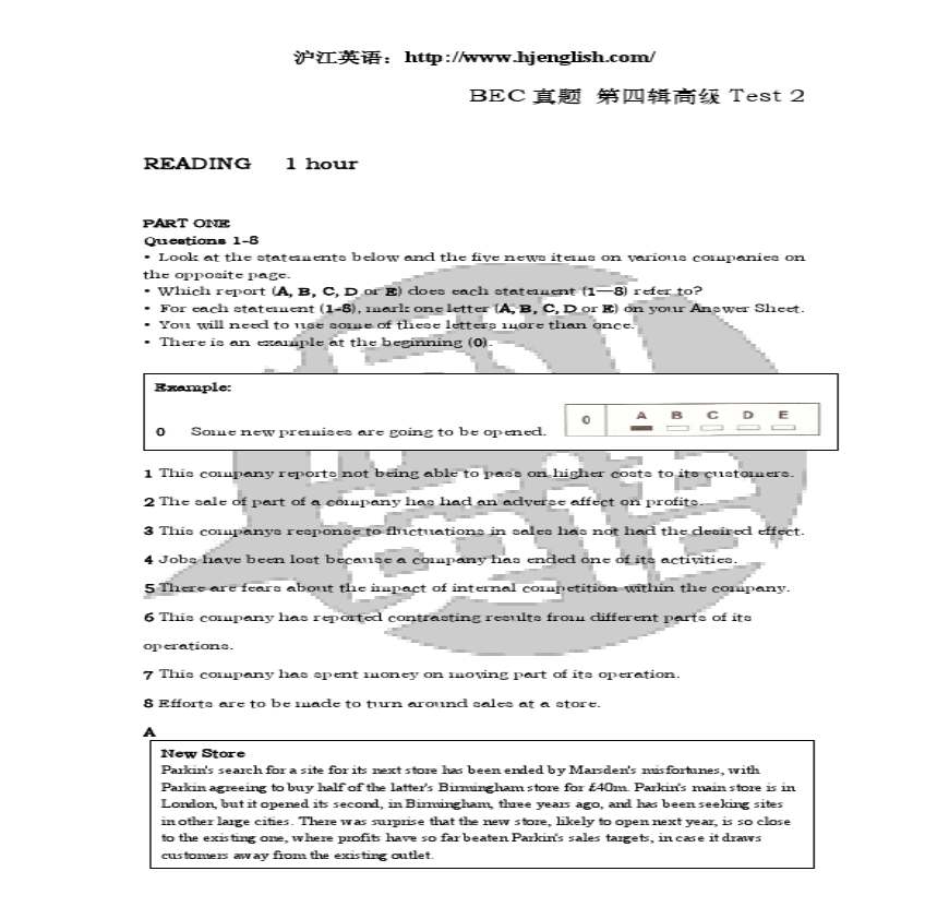 BEC真题 第四辑高级Test 2资料下载,喜欢的朋友可以下载收藏!