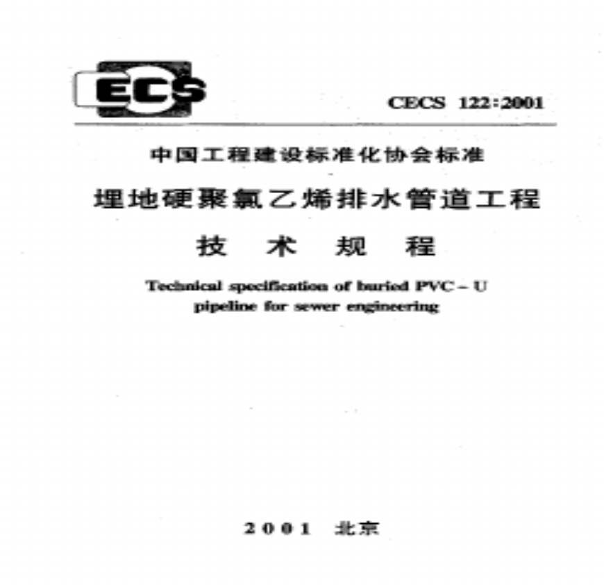 CECS 122:2001 埋地硬聚氯乙烯排水管道工程技术规程资料下载,喜欢的朋友可以下载收藏!